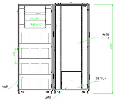 當要求超長后備時間,例如1小時,2小時等,如果主機柜內部空間不夠,此時我們會配套一個外形跟主機柜類似的電池柜,它主要作用是放置后備電池,此電池柜前后側門各方面技術參數(shù)參數(shù)與主體機柜無異,保持外觀一致性,整潔美觀,只是機柜內部不需要有冷熱封閉功能,不需要有監(jiān)控門及其天窗狀態(tài)等。