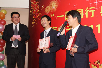 工作報告結束、短暫休息后,我們的主持人帶著大家進入了議程中令人興奮與激動的優(yōu)秀員工表彰及員工精神傳送時刻。企業(yè)要發(fā)展就得要有創(chuàng)新,今年公司結合傳統的評選方式,也同時啟動了新的評選方式:2011年度共設置5個獎項,評選出7名優(yōu)秀員工、1個優(yōu)秀團隊。